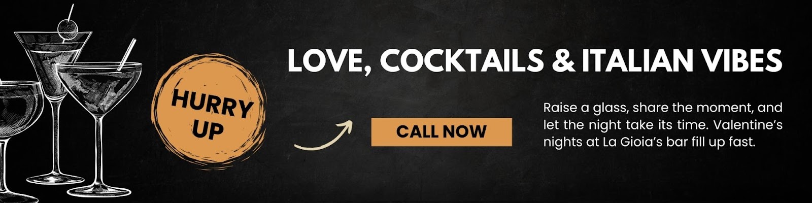 Italian dining isn’t just about food; it’s about rhythm. Aperitivo culture encourages slowing down with a drink and small bites before dinner. At La Gioia’s bar, we complement this tradition beautifully.